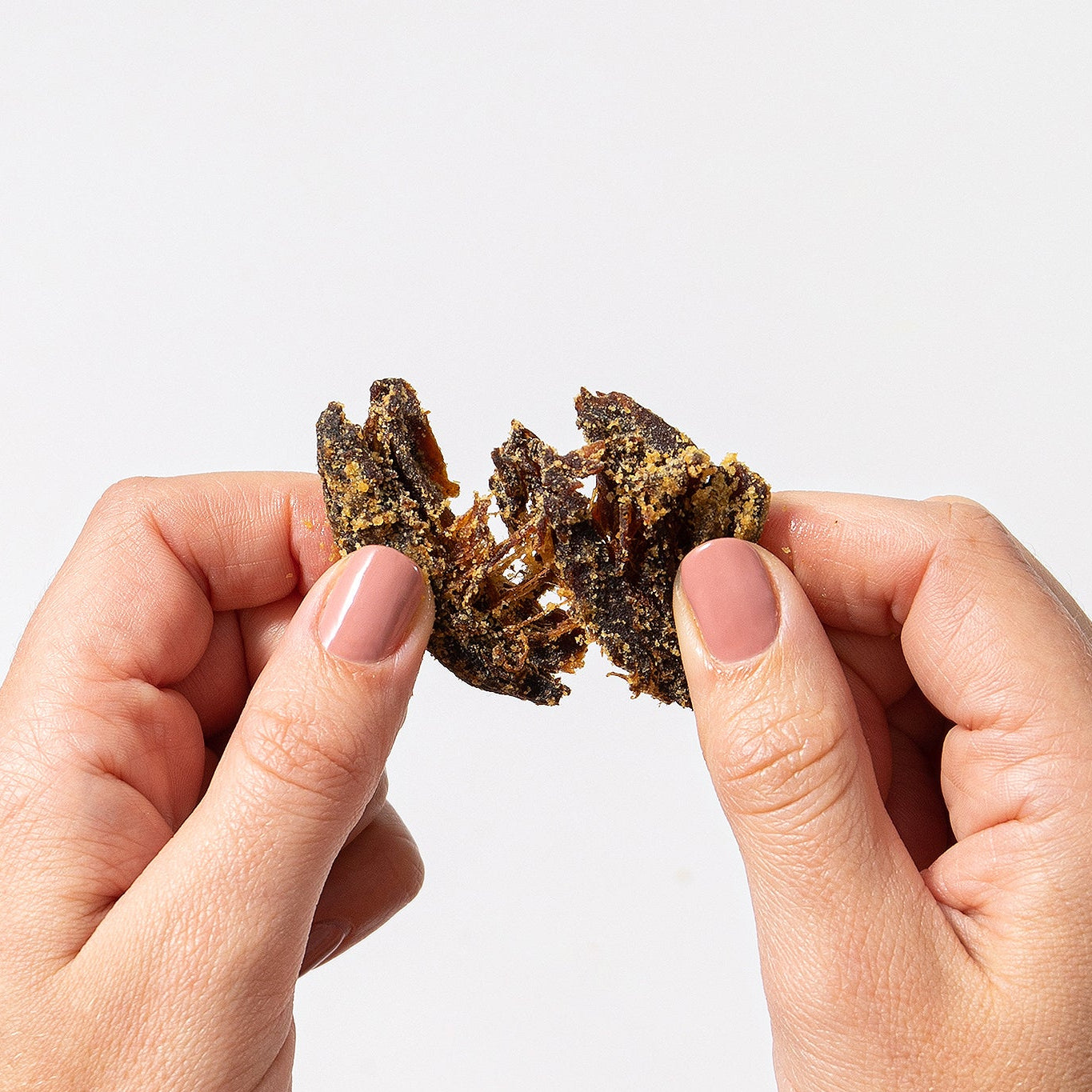 Made of organic shiitake mushrooms, Pan's Mushroom Jerky is plant-based, vegan, a good source of fiber, allergen friendly, Kosher, soy-free, gluten-free and made with simple ingredients.